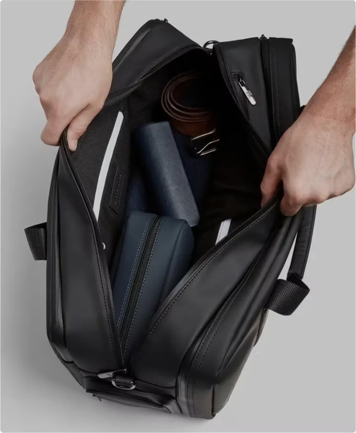Your perfect companion for travel, work, and play. This versatile bag combines the best features of a duffel, garment bag, briefcase, and tech organizer — all in one stylish design.